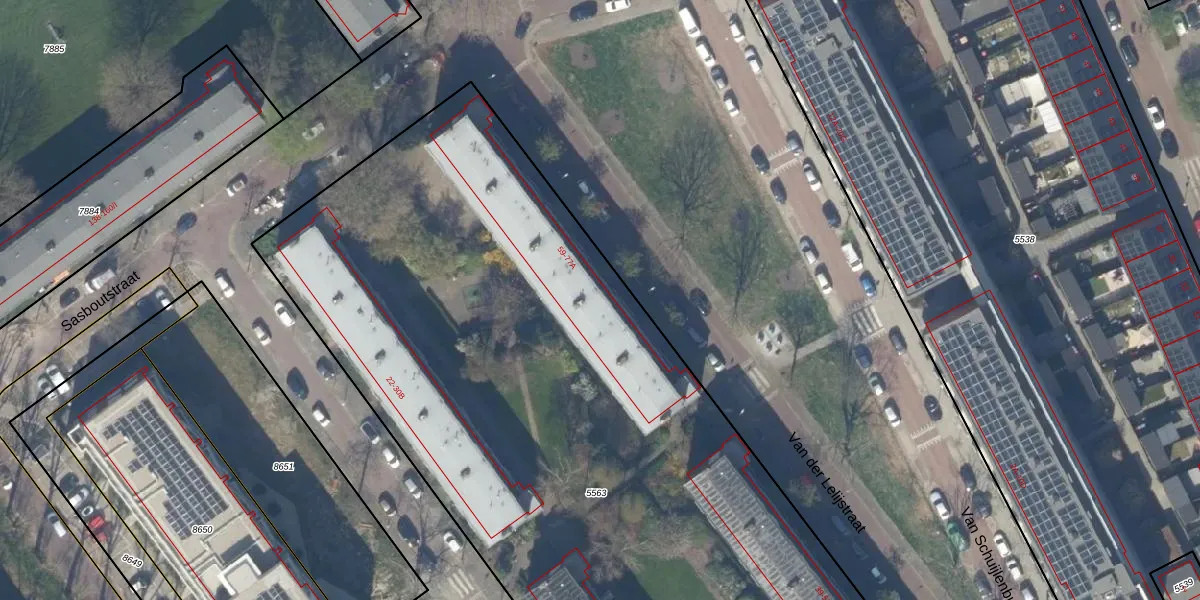 Het perceel waarop Van der Lelijstraat 65 staat heeft een oppervlakte van 9755 m². Dit is een zeer groot perceel. De perceeloppervlakte wordt geregistreerd door het Kadaster. Gedetailleerde informatie over de maten van dit perceel kunt u vinden in het rapport Kadastrale kaart met maatvoering van Van der Lelijstraat 65.