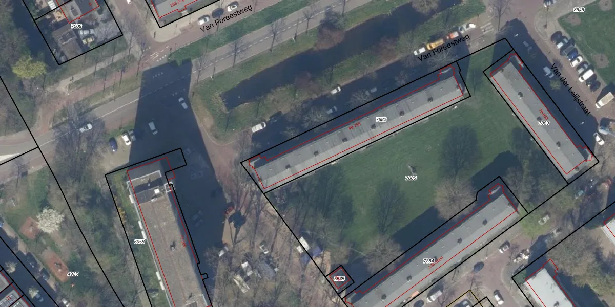 Het perceel waarop Van Foreestweg 69-I staat heeft een oppervlakte van 935 m². Dit is een groot perceel. De perceeloppervlakte wordt geregistreerd door het Kadaster. Gedetailleerde informatie over de maten van dit perceel kunt u vinden in het rapport Kadastrale kaart met maatvoering van Van Foreestweg 69-I.