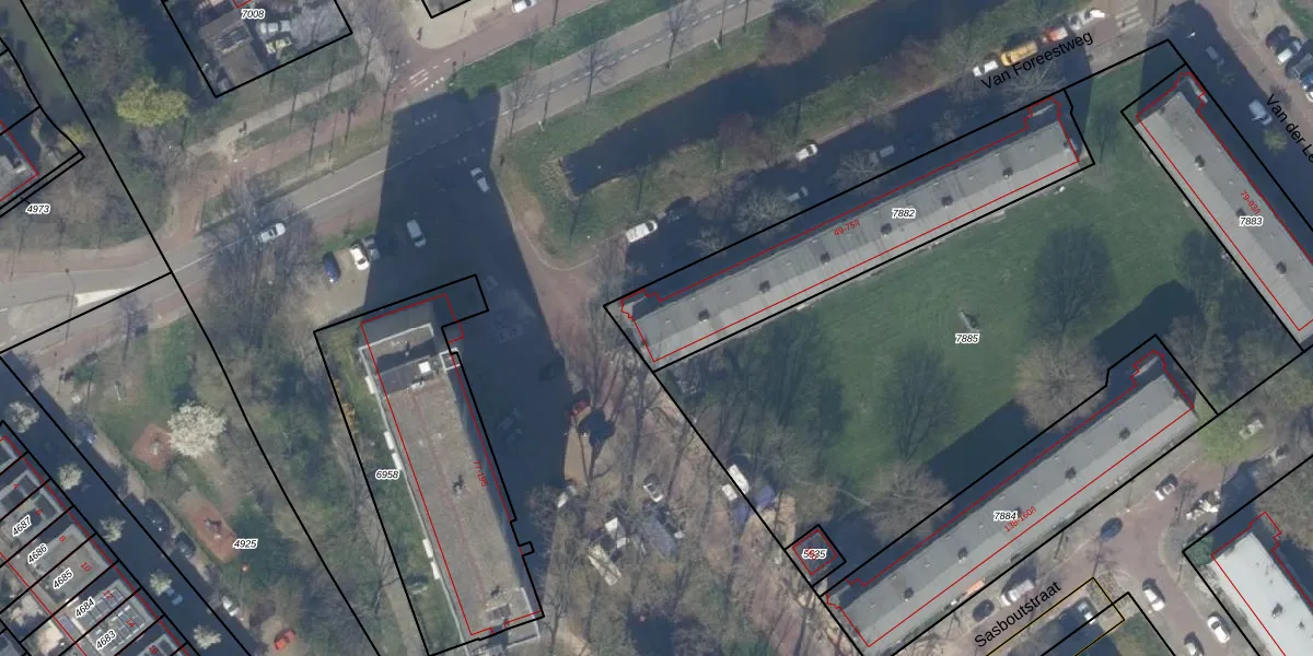 Het perceel waarop Van Foreestweg 75-I staat heeft een oppervlakte van 935 m². Dit is een groot perceel. De perceeloppervlakte wordt geregistreerd door het Kadaster. Gedetailleerde informatie over de maten van dit perceel kunt u vinden in het rapport Kadastrale kaart met maatvoering van Van Foreestweg 75-I.