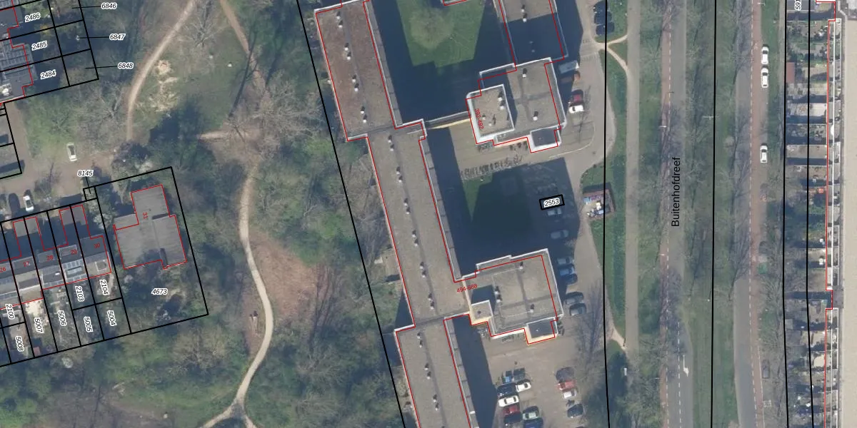 Het perceel waarop het adres ligt is DEL00-R-5354. De afkorting 'DEL00' staat voor kadastrale gemeente Delft. De oppervlakte van het perceel is 1,5 ha. Dat is groter dan gemiddeld in Delft, waar de gemiddelde perceeloppervlakte op 923,41 m² ligt. Het kleinste perceel in de kadastrale gemeente is 0 m² groot. De grootste perceeloppervlakte is 64,1 ha. Op het perceel zijn 564 adressen aanwezig. In de Basisregistratie Kadaster (BRK) werden de grenzen van het perceel geregistreerd op 10-03-2003.