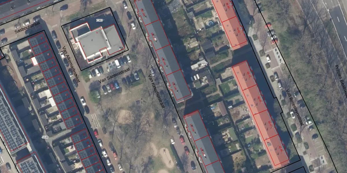 Het perceel waarop Van Kinschotstraat 142 staat heeft een oppervlakte van 6780 m². Dit is een zeer groot perceel. De perceeloppervlakte wordt geregistreerd door het Kadaster. Gedetailleerde informatie over de maten van dit perceel kunt u vinden in het rapport Kadastrale kaart met maatvoering van Van Kinschotstraat 142.