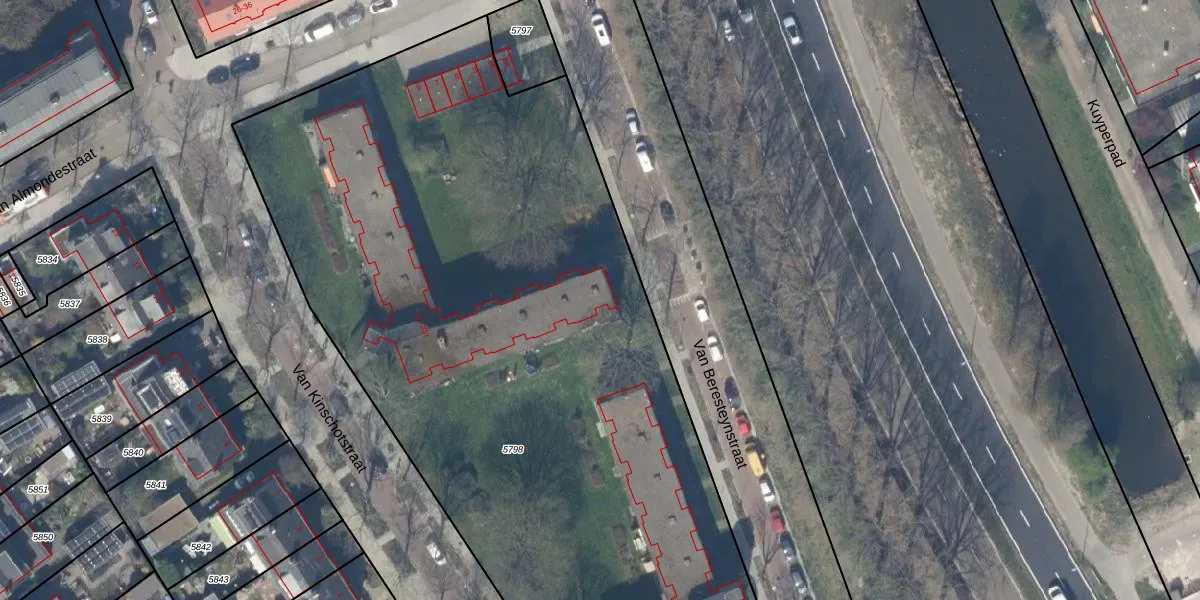 Het perceel waarop Van Kinschotstraat 2-A-II staat heeft een oppervlakte van 5338 m². Dit is een zeer groot perceel. De perceeloppervlakte wordt geregistreerd door het Kadaster. Gedetailleerde informatie over de maten van dit perceel kunt u vinden in het rapport Kadastrale kaart met maatvoering van Van Kinschotstraat 2-A-II.
