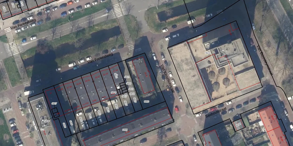 Van Kinschotstraat 25 is gelegen op kadastraal perceel DEL00F6443. Deze kadastrale aanduiding is uniek en wordt gebruikt door het Kadaster om eigendomsrechten en andere zakelijke rechten vast te leggen. Het perceel maakt onderdeel uit van de kadastrale gemeente Delft.