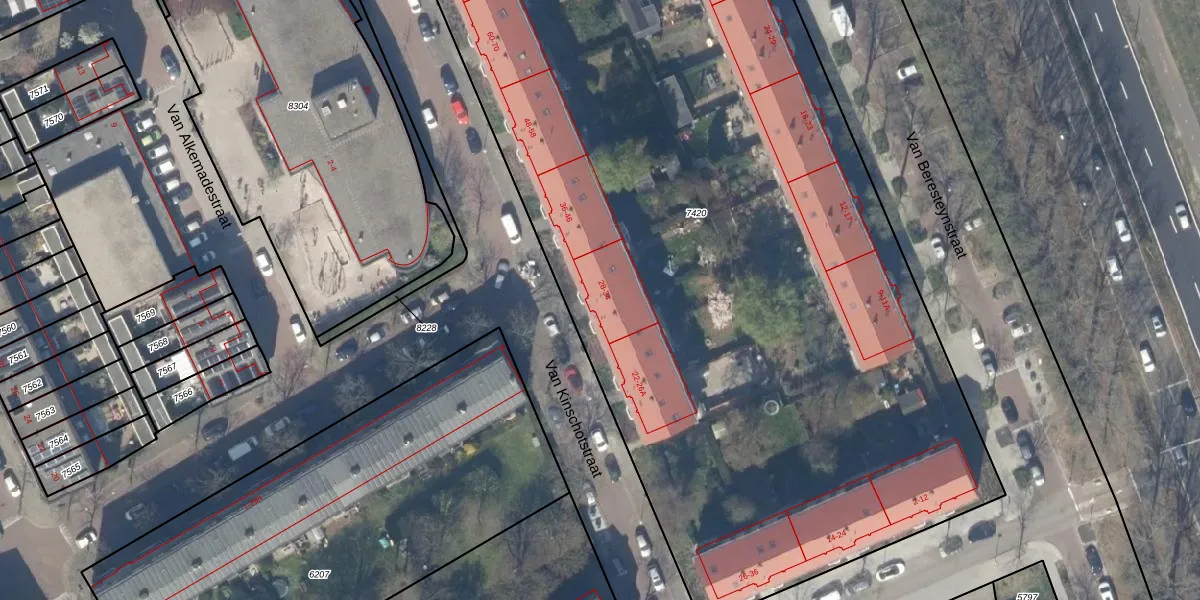 Van Kinschotstraat 30 is gelegen op kadastraal perceel DEL00F7420. Deze kadastrale aanduiding is uniek en wordt gebruikt door het Kadaster om eigendomsrechten en andere zakelijke rechten vast te leggen. Het perceel maakt onderdeel uit van de kadastrale gemeente Delft.