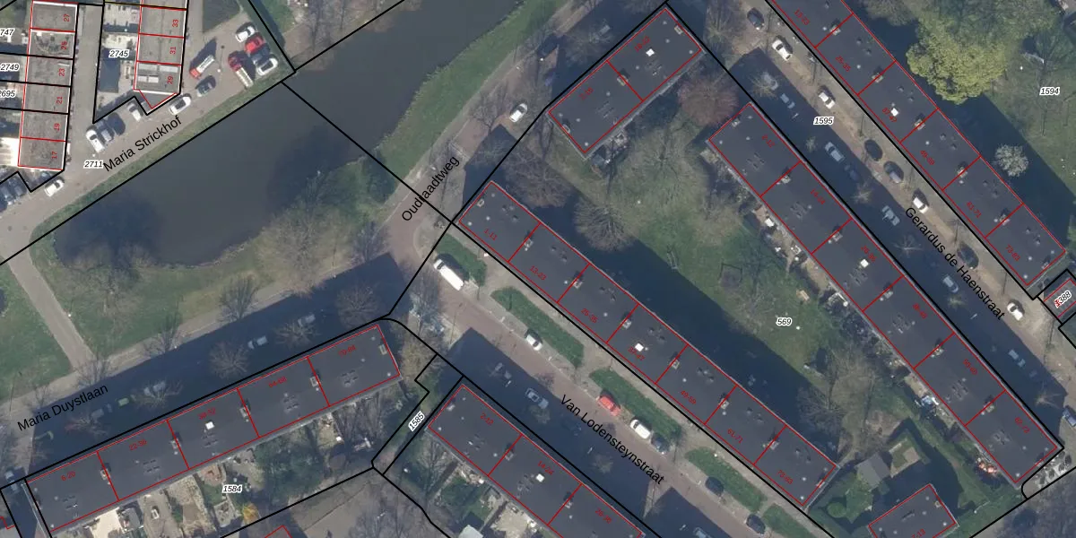 Het perceel waarop Van Lodensteynstraat 13 staat heeft een oppervlakte van 5456 m². Dit is een zeer groot perceel. De perceeloppervlakte wordt geregistreerd door het Kadaster. Gedetailleerde informatie over de maten van dit perceel kunt u vinden in het rapport Kadastrale kaart met maatvoering van Van Lodensteynstraat 13.