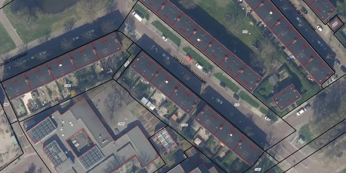 Het perceel waarop Van Lodensteynstraat 24 staat heeft een oppervlakte van 2229 m². Dit is een zeer groot perceel. De perceeloppervlakte wordt geregistreerd door het Kadaster. Gedetailleerde informatie over de maten van dit perceel kunt u vinden in het rapport Kadastrale kaart met maatvoering van Van Lodensteynstraat 24.