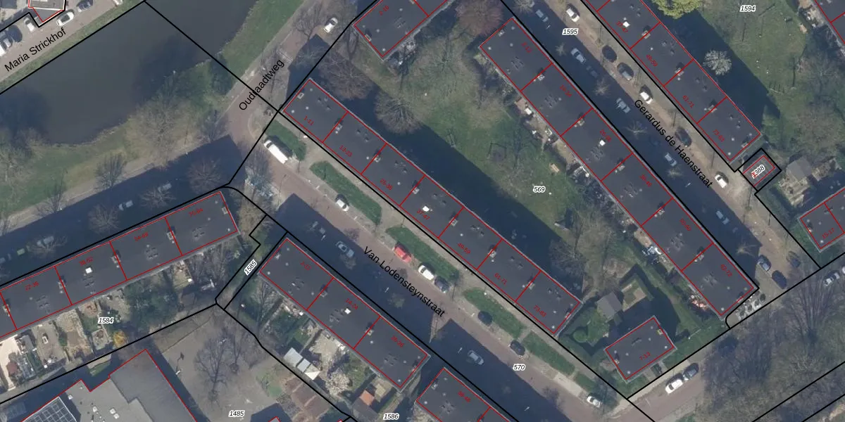 Het perceel waarop Van Lodensteynstraat 37 staat heeft een oppervlakte van 5456 m². Dit is een zeer groot perceel. De perceeloppervlakte wordt geregistreerd door het Kadaster. Gedetailleerde informatie over de maten van dit perceel kunt u vinden in het rapport Kadastrale kaart met maatvoering van Van Lodensteynstraat 37.