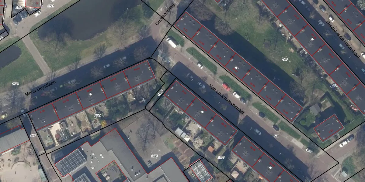 Het perceel waarop Van Lodensteynstraat 4 staat heeft een oppervlakte van 2229 m². Dit is een zeer groot perceel. De perceeloppervlakte wordt geregistreerd door het Kadaster. Gedetailleerde informatie over de maten van dit perceel kunt u vinden in het rapport Kadastrale kaart met maatvoering van Van Lodensteynstraat 4.