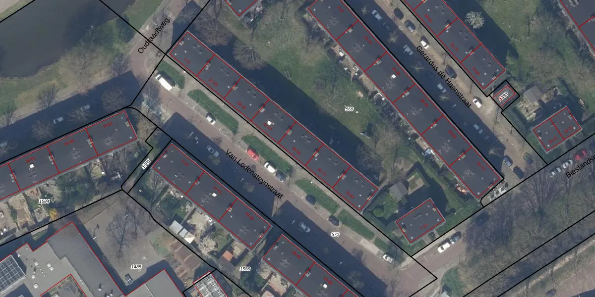 Het perceel waarop Van Lodensteynstraat 55 staat heeft een oppervlakte van 5456 m². Dit is een zeer groot perceel. De perceeloppervlakte wordt geregistreerd door het Kadaster. Gedetailleerde informatie over de maten van dit perceel kunt u vinden in het rapport Kadastrale kaart met maatvoering van Van Lodensteynstraat 55.
