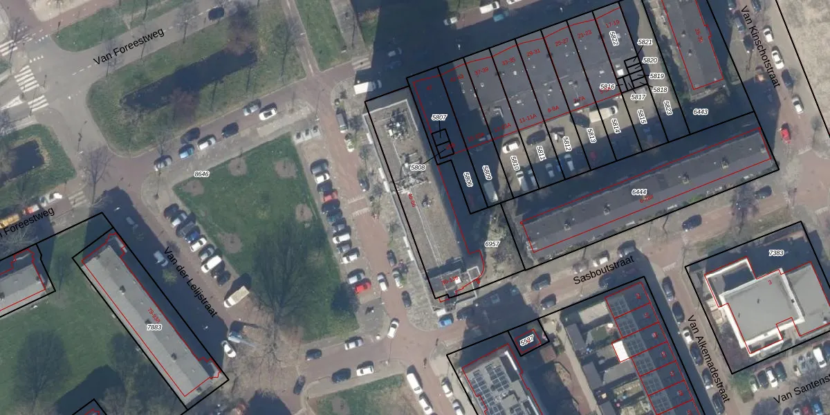 Het perceel waarop Van Schuijlenburchstraat 54 staat heeft een oppervlakte van 823 m². Dit is een groot perceel. De perceeloppervlakte wordt geregistreerd door het Kadaster. Gedetailleerde informatie over de maten van dit perceel kunt u vinden in het rapport Kadastrale kaart met maatvoering van Van Schuijlenburchstraat 54.