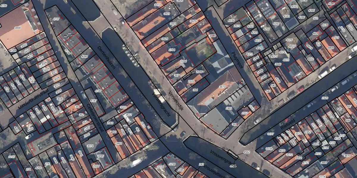 Verwersdijk 14 is gelegen op kadastraal perceel DEL00C2101. Deze kadastrale aanduiding is uniek en wordt gebruikt door het Kadaster om eigendomsrechten en andere zakelijke rechten vast te leggen. Het perceel maakt onderdeel uit van de kadastrale gemeente Delft.