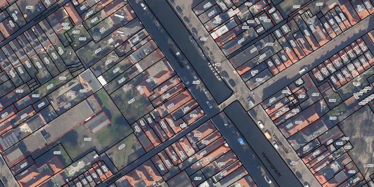 Verwersdijk 55 is gelegen op kadastraal perceel DEL00B3084. Deze kadastrale aanduiding is uniek en wordt gebruikt door het Kadaster om eigendomsrechten en andere zakelijke rechten vast te leggen. Het perceel maakt onderdeel uit van de kadastrale gemeente Delft.