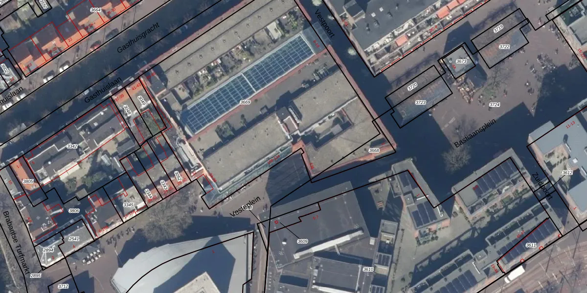 Het perceel waarop Vesteplein 112 staat heeft een oppervlakte van 3439 m². Dit is een zeer groot perceel. De perceeloppervlakte wordt geregistreerd door het Kadaster. Gedetailleerde informatie over de maten van dit perceel kunt u vinden in het rapport Kadastrale kaart met maatvoering van Vesteplein 112.