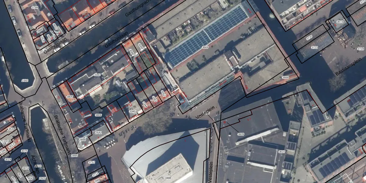 Het perceel waarop Vesteplein 34 staat heeft een oppervlakte van 3439 m². Dit is een zeer groot perceel. De perceeloppervlakte wordt geregistreerd door het Kadaster. Gedetailleerde informatie over de maten van dit perceel kunt u vinden in het rapport Kadastrale kaart met maatvoering van Vesteplein 34.