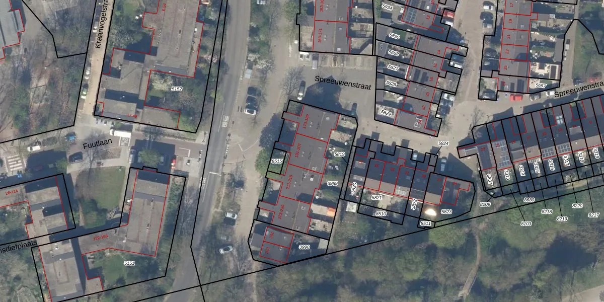 Het adres is gelegen op perceel 3989 in de sectie R en de kadastrale gemeente Delft. De kadastrale aanduiding is aldus DEL00-R-3989. De gemiddelde perceeloppervlakte in de kadastrale gemeente Delft is 923,41 m². Dit perceel is met zijn 985 m² dus groter dan gemiddeld. De grootste perceeloppervlakte in de kadastrale gemeente is 64,1 ha. De kleinste oppervlakte bedraagt 0 m². Op het perceel zijn 22 adressen aanwezig. De huidige grenzen van het perceel zijn digitaal in de Basisregistratie Kadaster (BRK) geregistreerd op 06-12-2021.