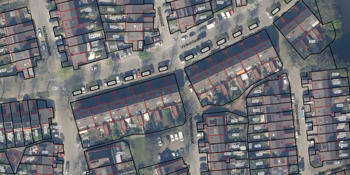 Het perceel waarop Vinkenlaan 55 staat heeft een oppervlakte van 1750 m². Dit is een zeer groot perceel. De perceeloppervlakte wordt geregistreerd door het Kadaster. Gedetailleerde informatie over de maten van dit perceel kunt u vinden in het rapport Kadastrale kaart met maatvoering van Vinkenlaan 55.