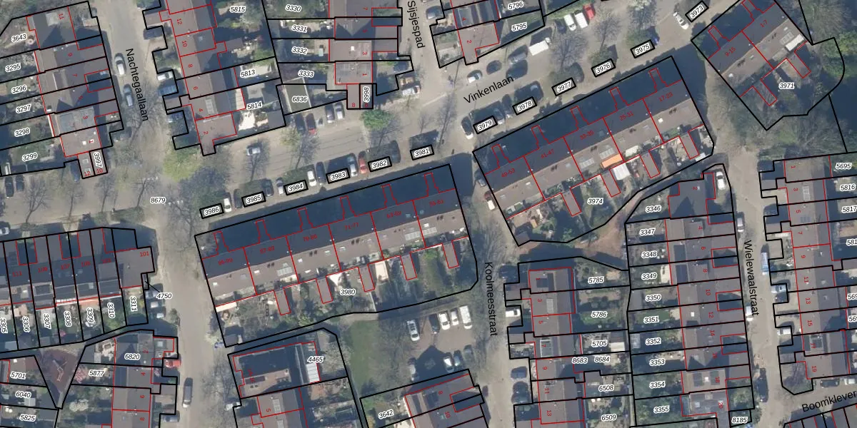 Het perceel waarop Vinkenlaan 59 staat heeft een oppervlakte van 1750 m². Dit is een zeer groot perceel. De perceeloppervlakte wordt geregistreerd door het Kadaster. Gedetailleerde informatie over de maten van dit perceel kunt u vinden in het rapport Kadastrale kaart met maatvoering van Vinkenlaan 59.