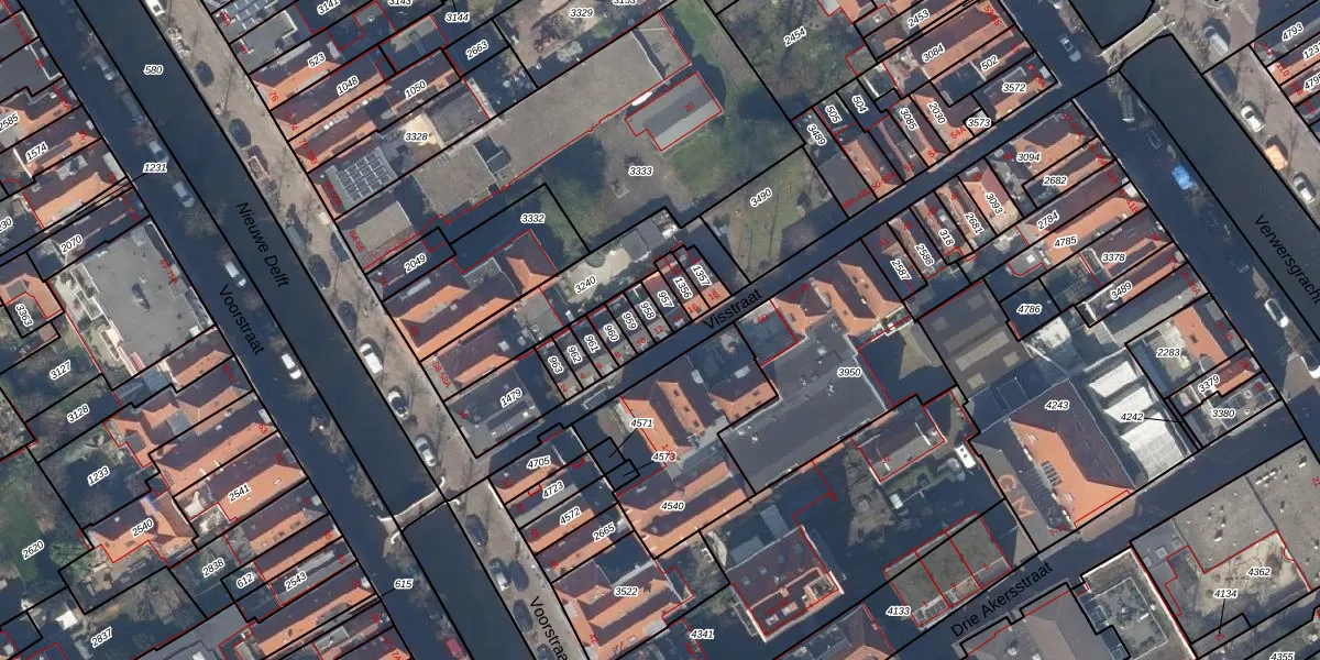 Visstraat 12 is gelegen op kadastraal perceel DEL00B958. Deze kadastrale aanduiding is uniek en wordt gebruikt door het Kadaster om eigendomsrechten en andere zakelijke rechten vast te leggen. Het perceel maakt onderdeel uit van de kadastrale gemeente Delft.