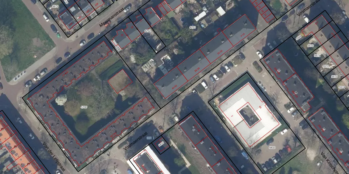 Het perceel waarop Vosmaerstraat 40 staat heeft een oppervlakte van 4290 m². Dit is een zeer groot perceel. De perceeloppervlakte wordt geregistreerd door het Kadaster. Gedetailleerde informatie over de maten van dit perceel kunt u vinden in het rapport Kadastrale kaart met maatvoering van Vosmaerstraat 40.