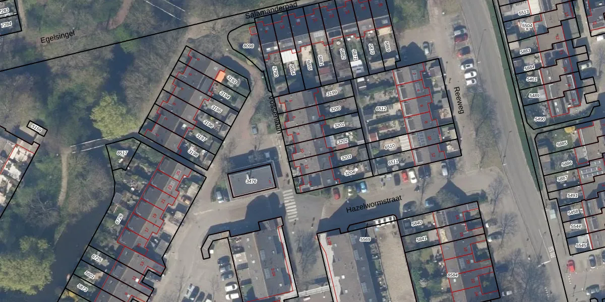 Vossenlaan 10 is gelegen op kadastraal perceel DEL00R3202. Deze kadastrale aanduiding is uniek en wordt gebruikt door het Kadaster om eigendomsrechten en andere zakelijke rechten vast te leggen. Het perceel maakt onderdeel uit van de kadastrale gemeente Delft.