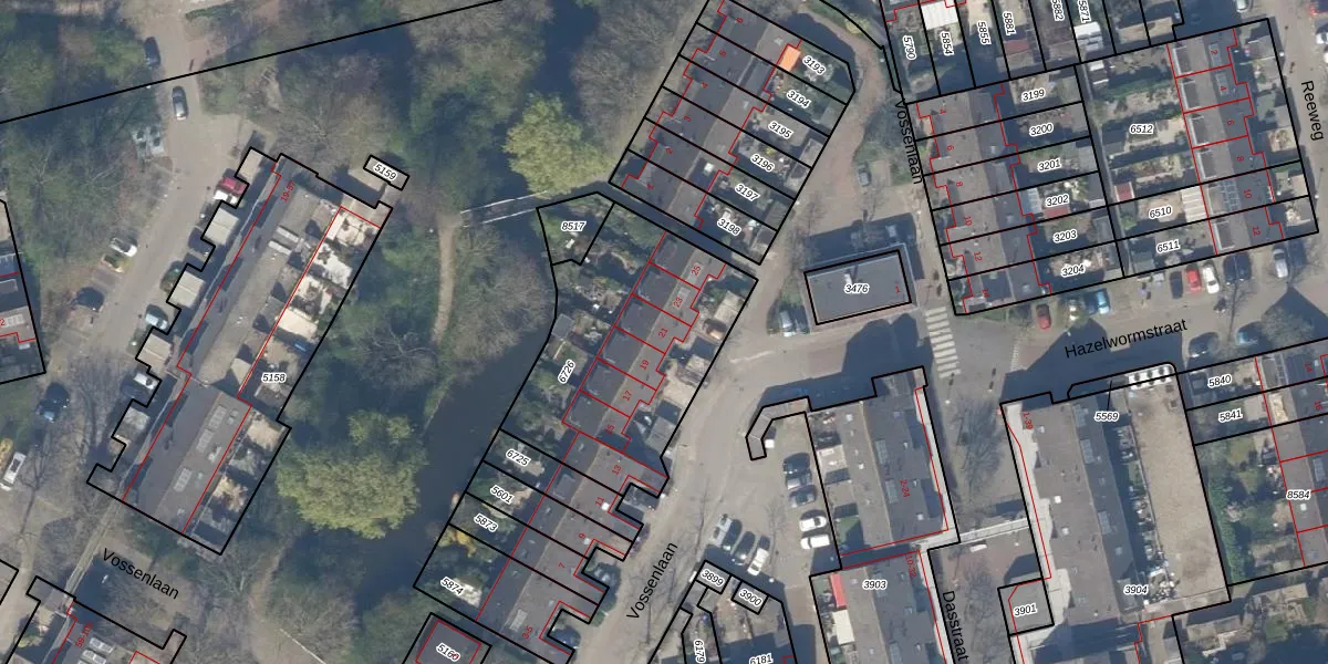 Vossenlaan 21 is gelegen op kadastraal perceel DEL00R6726. Deze kadastrale aanduiding is uniek en wordt gebruikt door het Kadaster om eigendomsrechten en andere zakelijke rechten vast te leggen. Het perceel maakt onderdeel uit van de kadastrale gemeente Delft.