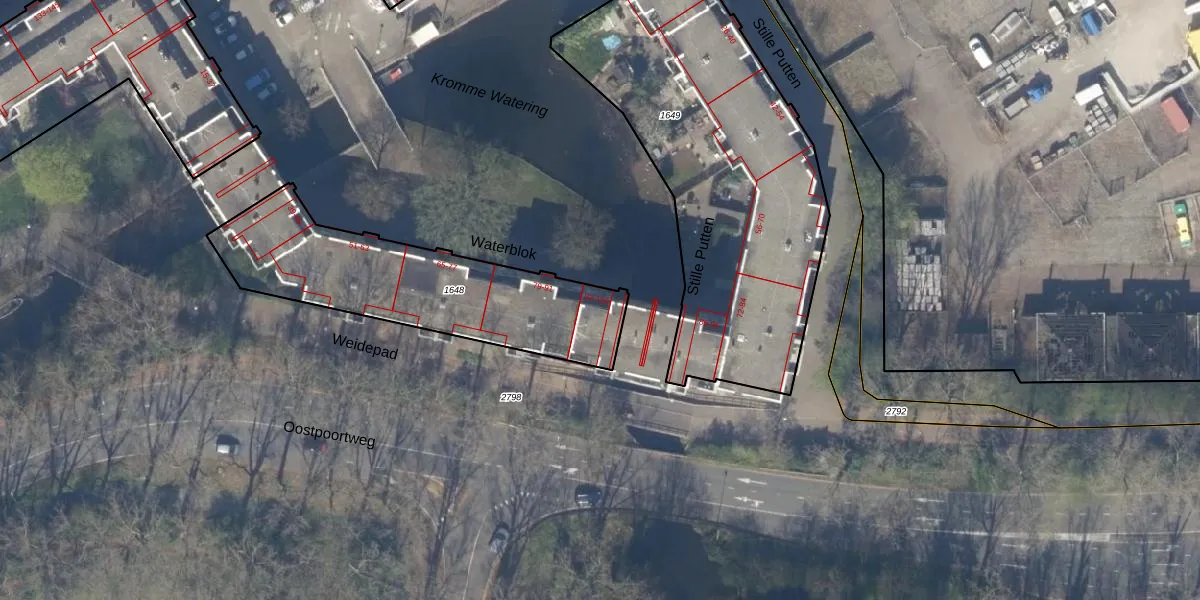Het perceel waarop Waterblok 103 staat heeft een oppervlakte van 935 m². Dit is een groot perceel. De perceeloppervlakte wordt geregistreerd door het Kadaster. Gedetailleerde informatie over de maten van dit perceel kunt u vinden in het rapport Kadastrale kaart met maatvoering van Waterblok 103.