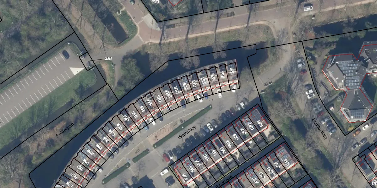 Het perceel waarop Waterloop 12 staat heeft een oppervlakte van 70 m². Dit is een klein perceel. De perceeloppervlakte wordt geregistreerd door het Kadaster. Gedetailleerde informatie over de maten van dit perceel kunt u vinden in het rapport Kadastrale kaart met maatvoering van Waterloop 12.