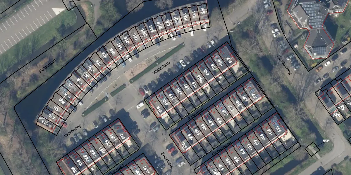 Gebruik de zoekbalk of klik op een perceel voor informatie over de adressen binnen dit perceel.