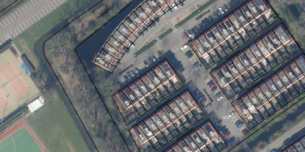 Gebruik de zoekbalk of klik op een perceel voor informatie over de adressen binnen dit perceel.