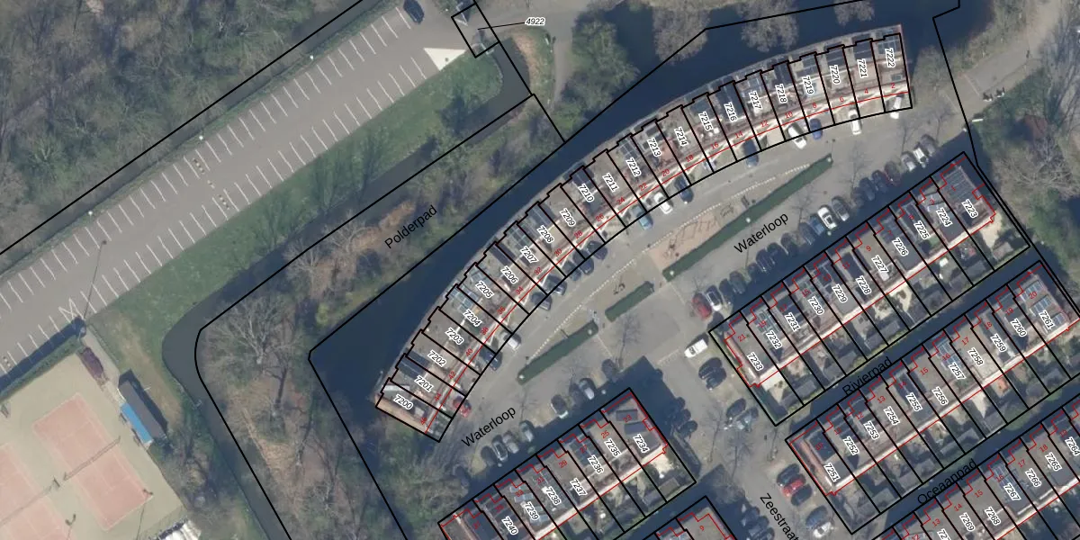 Het perceel waarop Waterloop 32 staat heeft een oppervlakte van 70 m². Dit is een klein perceel. De perceeloppervlakte wordt geregistreerd door het Kadaster. Gedetailleerde informatie over de maten van dit perceel kunt u vinden in het rapport Kadastrale kaart met maatvoering van Waterloop 32.