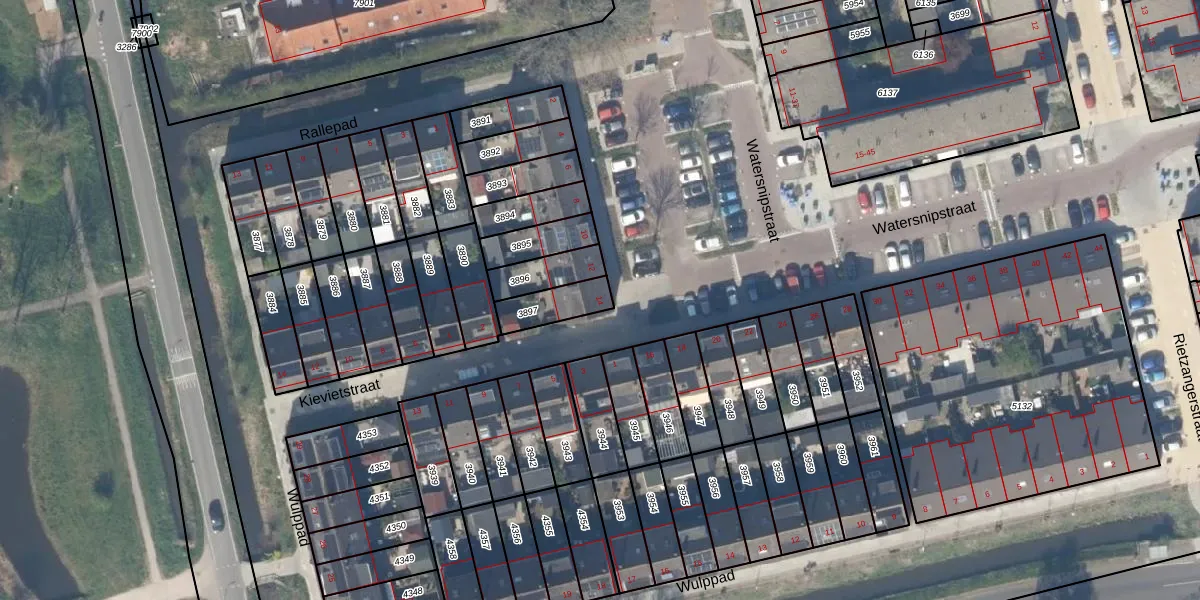 Watersnipstraat 14 is gelegen op kadastraal perceel DEL00R3897. Deze kadastrale aanduiding is uniek en wordt gebruikt door het Kadaster om eigendomsrechten en andere zakelijke rechten vast te leggen. Het perceel maakt onderdeel uit van de kadastrale gemeente Delft.
