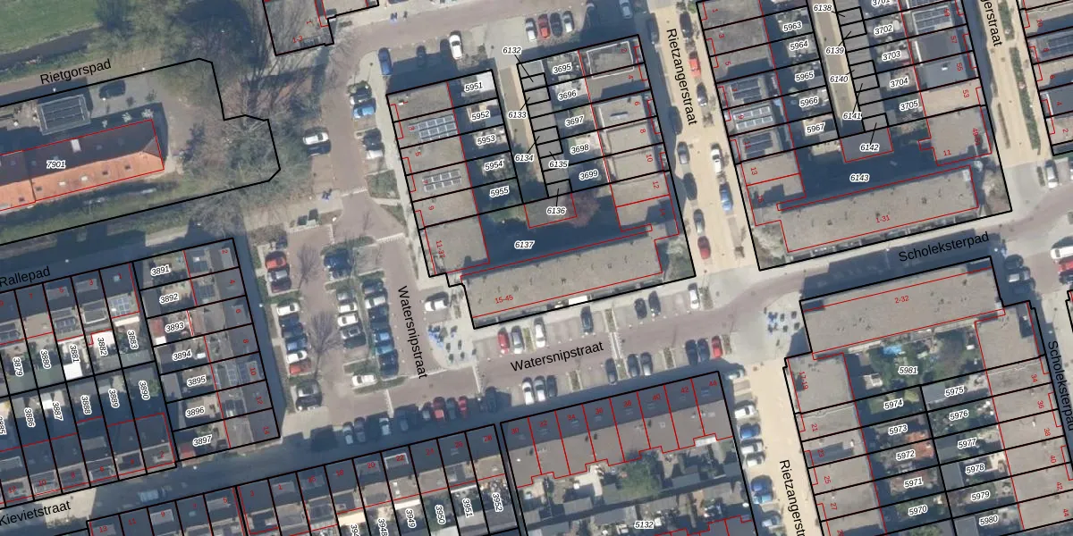 Watersnipstraat 33 is gelegen op kadastraal perceel DEL00R6137. Deze kadastrale aanduiding is uniek en wordt gebruikt door het Kadaster om eigendomsrechten en andere zakelijke rechten vast te leggen. Het perceel maakt onderdeel uit van de kadastrale gemeente Delft.