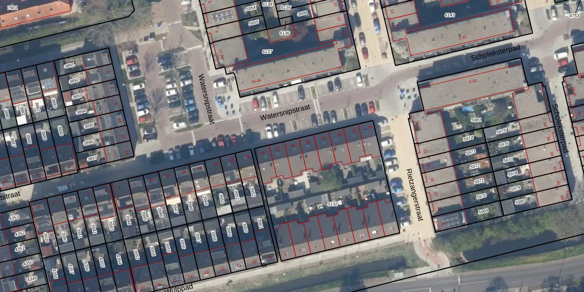 Watersnipstraat 34 is gelegen op kadastraal perceel DEL00R5132. Deze kadastrale aanduiding is uniek en wordt gebruikt door het Kadaster om eigendomsrechten en andere zakelijke rechten vast te leggen. Het perceel maakt onderdeel uit van de kadastrale gemeente Delft.