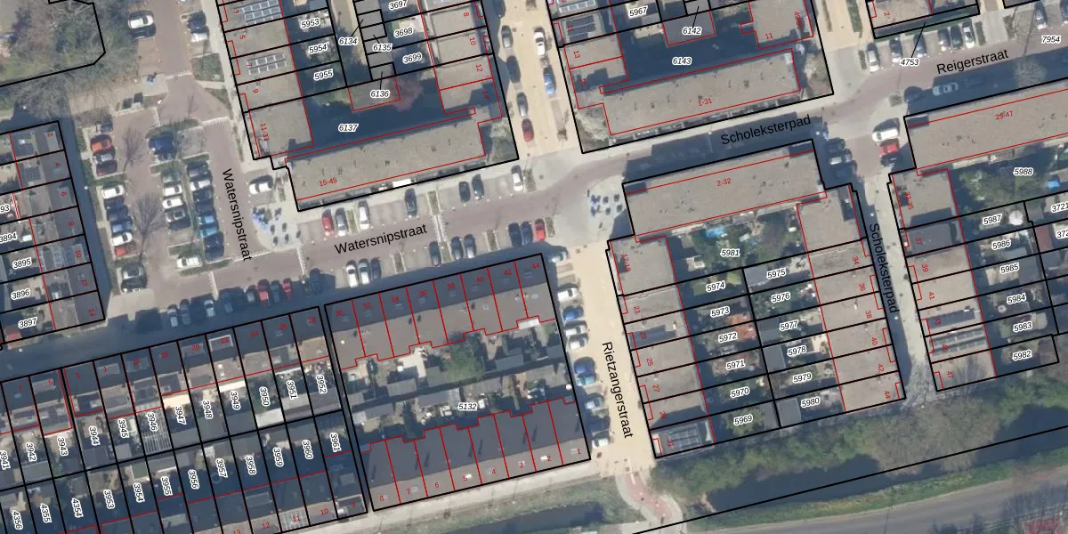 Watersnipstraat 44 is gelegen op kadastraal perceel DEL00R5132. Deze kadastrale aanduiding is uniek en wordt gebruikt door het Kadaster om eigendomsrechten en andere zakelijke rechten vast te leggen. Het perceel maakt onderdeel uit van de kadastrale gemeente Delft.