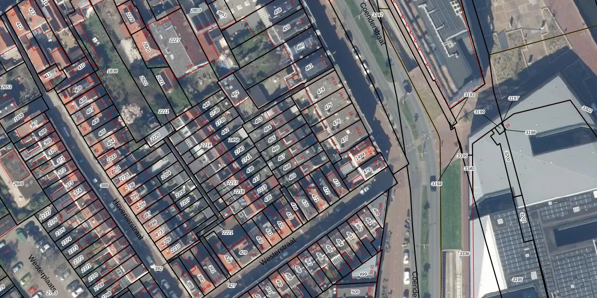 Het perceel waarop Westerstraat 14 staat heeft een oppervlakte van 65 m². Dit is een klein perceel. De perceeloppervlakte wordt geregistreerd door het Kadaster. Gedetailleerde informatie over de maten van dit perceel kunt u vinden in het rapport Kadastrale kaart met maatvoering van Westerstraat 14.