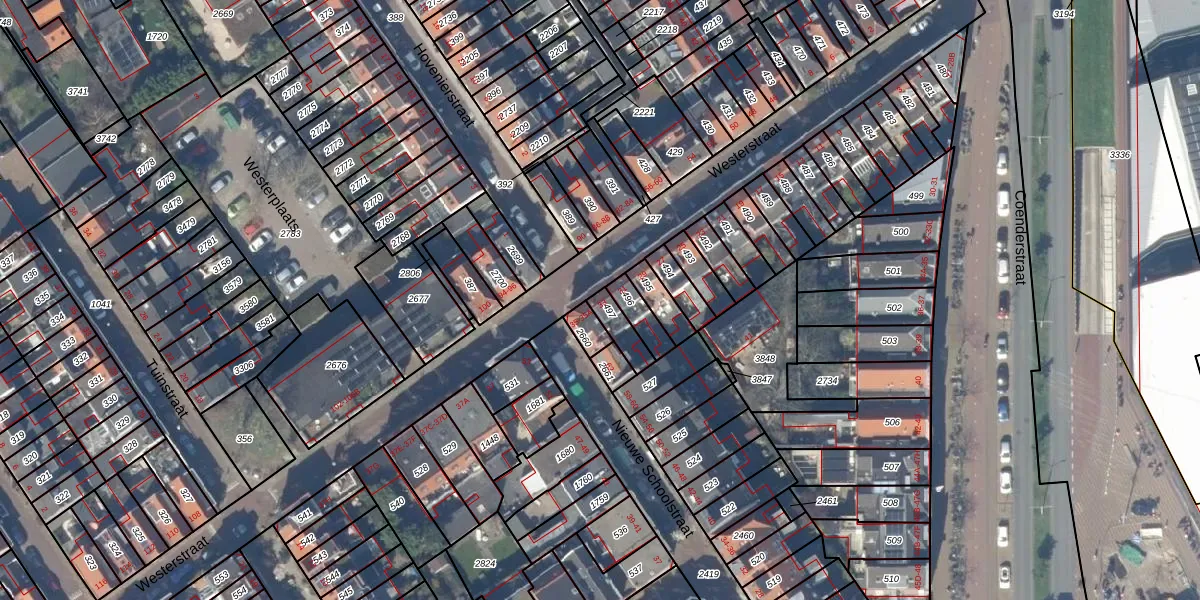 Het perceel waarop Westerstraat 33 staat heeft een oppervlakte van 61 m². Dit is een klein perceel. De perceeloppervlakte wordt geregistreerd door het Kadaster. Gedetailleerde informatie over de maten van dit perceel kunt u vinden in het rapport Kadastrale kaart met maatvoering van Westerstraat 33.