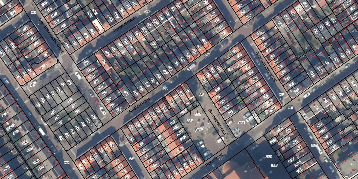 Gebruik de zoekbalk of klik op een perceel voor informatie over de adressen binnen dit perceel.