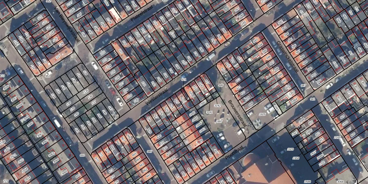 Het perceel waarop Westerstraat 69-A staat heeft een oppervlakte van 13 m². Dit is een klein perceel. De perceeloppervlakte wordt geregistreerd door het Kadaster. Gedetailleerde informatie over de maten van dit perceel kunt u vinden in het rapport Kadastrale kaart met maatvoering van Westerstraat 69-A.