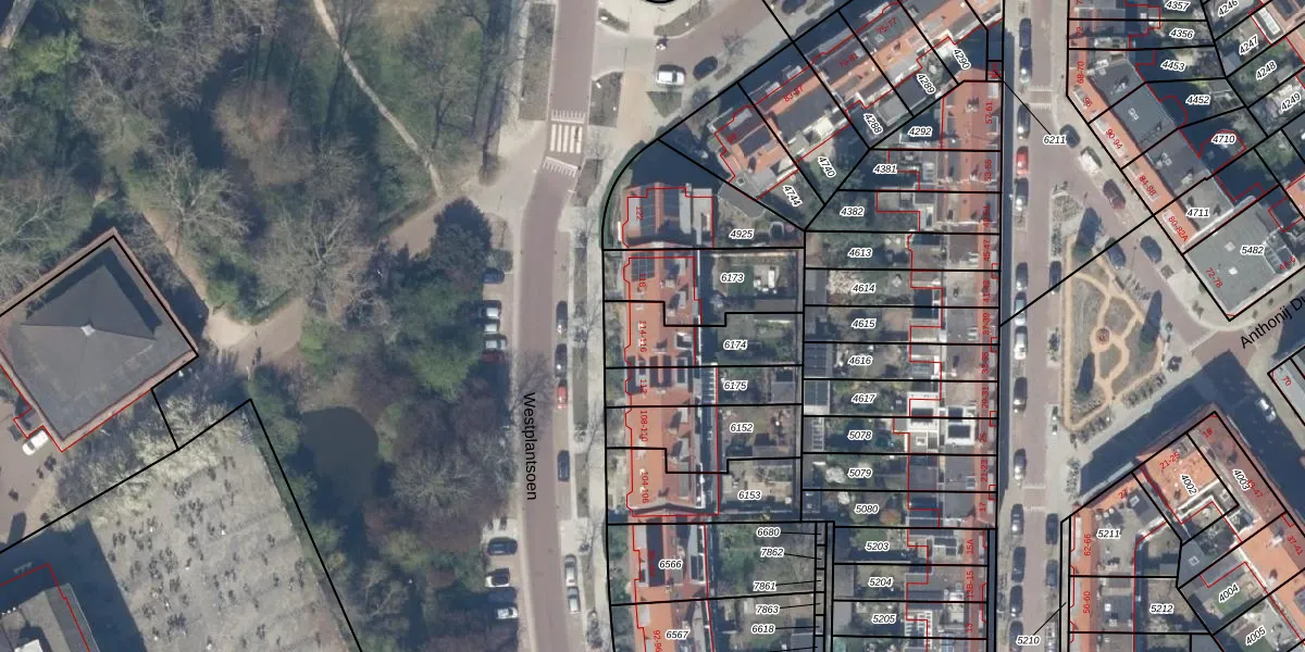 Het perceel waarop Westplantsoen 116 staat heeft een oppervlakte van 250 m². Dit is een middelgroot perceel. De perceeloppervlakte wordt geregistreerd door het Kadaster. Gedetailleerde informatie over de maten van dit perceel kunt u vinden in het rapport Kadastrale kaart met maatvoering van Westplantsoen 116.