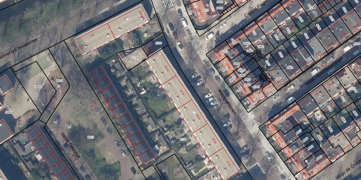 Het perceel waarop Westplantsoen 51 staat heeft een oppervlakte van 6937 m². Dit is een zeer groot perceel. De perceeloppervlakte wordt geregistreerd door het Kadaster. Gedetailleerde informatie over de maten van dit perceel kunt u vinden in het rapport Kadastrale kaart met maatvoering van Westplantsoen 51.