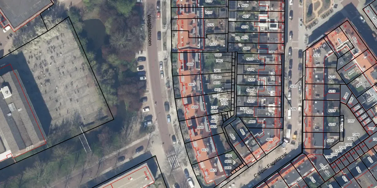Het perceel waarop het adres ligt is DEL00-F-6567. De afkorting 'DEL00' staat voor kadastrale gemeente Delft. Het perceel is kleiner dan gemiddeld in Delft. Het perceel is 340 m² groot, terwijl het gemiddelde ligt op 923,41 m². Het grootste perceel in de kadastrale gemeente is 64,1 ha. Het kleinste perceel heeft een oppervlakte van 0 m². Op het perceel liggen in totaal 3 adressen. In de Basisregistratie Kadaster (BRK) werden de grenzen van het perceel geregistreerd op 30-09-2010.