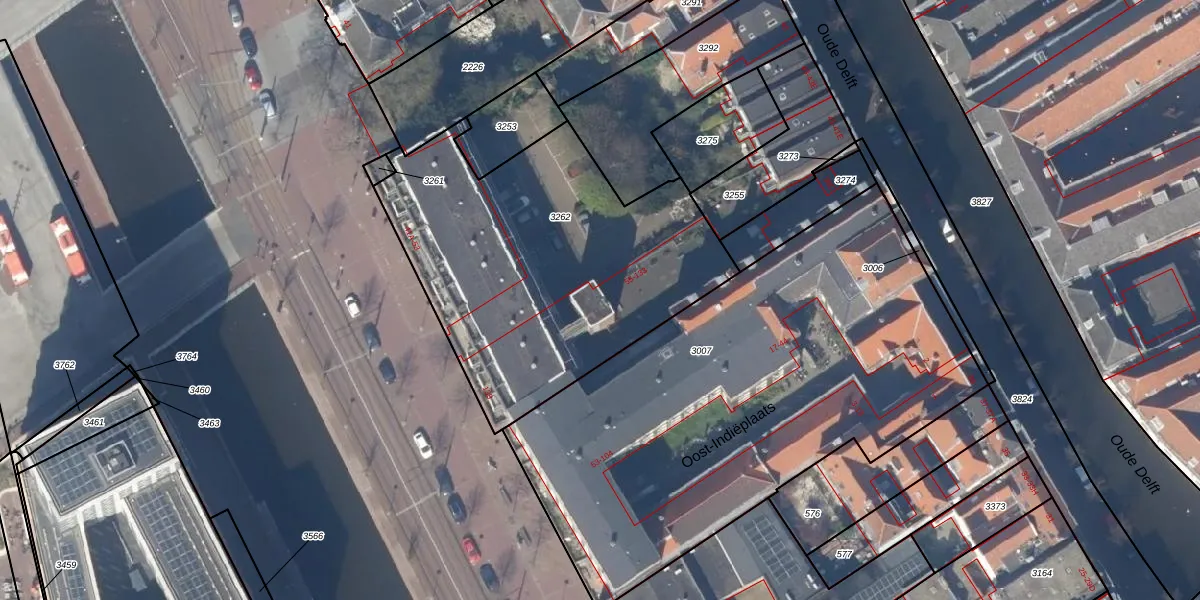 Het adres ligt op het perceel DEL00-E-3262, dat zich in de kadastrale gemeente Delft bevindt. Het perceel is met 1628 m² relatief groot. Het gemiddelde ligt in de kadastrale gemeente Delft op 923,41 m². De grootste perceeloppervlakte in de kadastrale gemeente is 64,1 ha. De kleinste oppervlakte bedraagt 0 m². Op het perceel liggen in totaal 42 adressen. In de Basisregistratie Kadaster (BRK) werden de grenzen van het perceel geregistreerd op 19-05-1998.