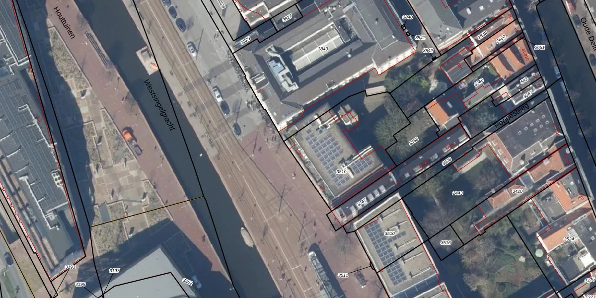 Het perceel waarop Westvest 15 staat heeft een oppervlakte van 950 m². Dit is een groot perceel. De perceeloppervlakte wordt geregistreerd door het Kadaster. Gedetailleerde informatie over de maten van dit perceel kunt u vinden in het rapport Kadastrale kaart met maatvoering van Westvest 15.