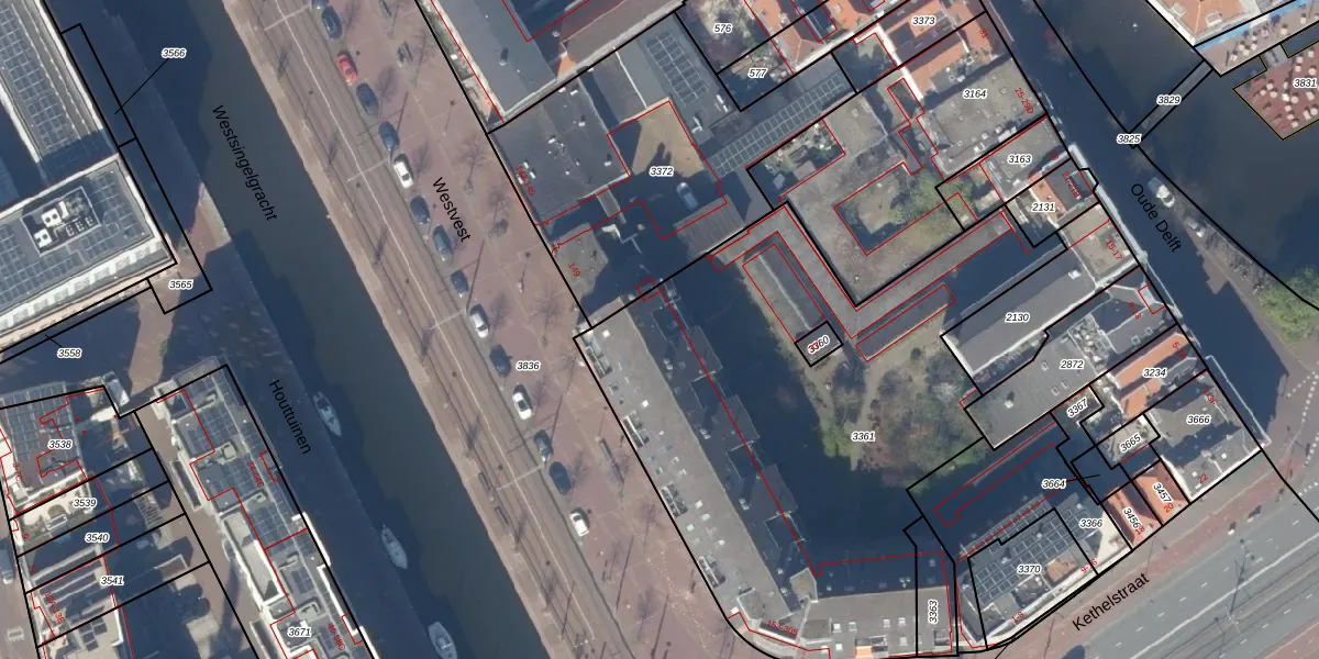 Het perceel waarop Westvest 155 staat heeft een oppervlakte van 2672 m². Dit is een zeer groot perceel. De perceeloppervlakte wordt geregistreerd door het Kadaster. Gedetailleerde informatie over de maten van dit perceel kunt u vinden in het rapport Kadastrale kaart met maatvoering van Westvest 155.