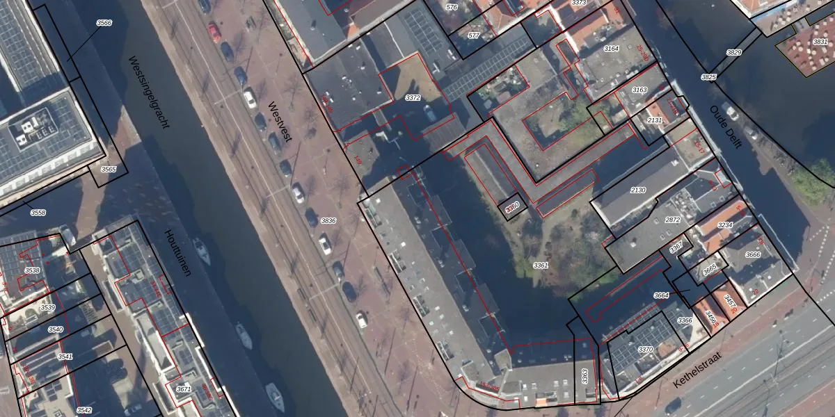 Het perceel waarop Westvest 157 staat heeft een oppervlakte van 2672 m². Dit is een zeer groot perceel. De perceeloppervlakte wordt geregistreerd door het Kadaster. Gedetailleerde informatie over de maten van dit perceel kunt u vinden in het rapport Kadastrale kaart met maatvoering van Westvest 157.