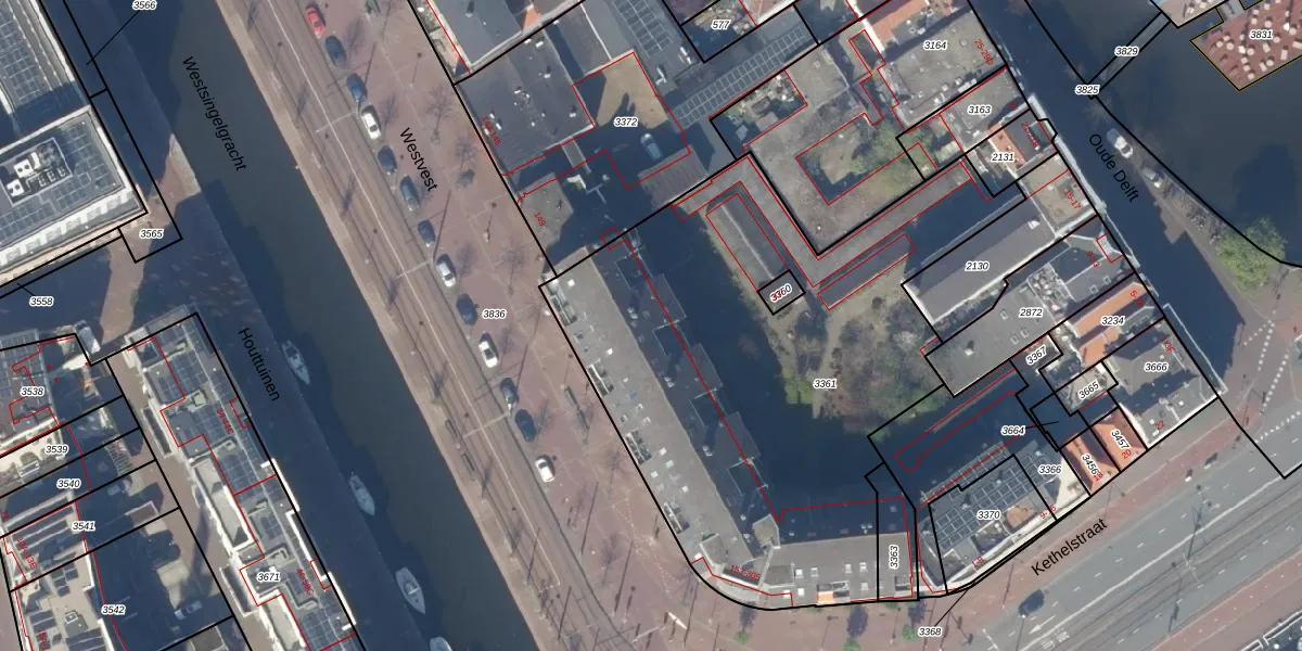 Het perceel waarop Westvest 161 staat heeft een oppervlakte van 2672 m². Dit is een zeer groot perceel. De perceeloppervlakte wordt geregistreerd door het Kadaster. Gedetailleerde informatie over de maten van dit perceel kunt u vinden in het rapport Kadastrale kaart met maatvoering van Westvest 161.