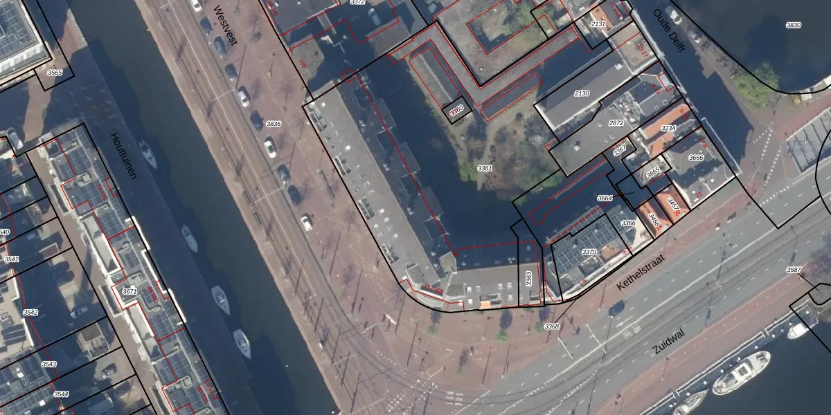 Het perceel waarop Westvest 175 staat heeft een oppervlakte van 2672 m². Dit is een zeer groot perceel. De perceeloppervlakte wordt geregistreerd door het Kadaster. Gedetailleerde informatie over de maten van dit perceel kunt u vinden in het rapport Kadastrale kaart met maatvoering van Westvest 175.