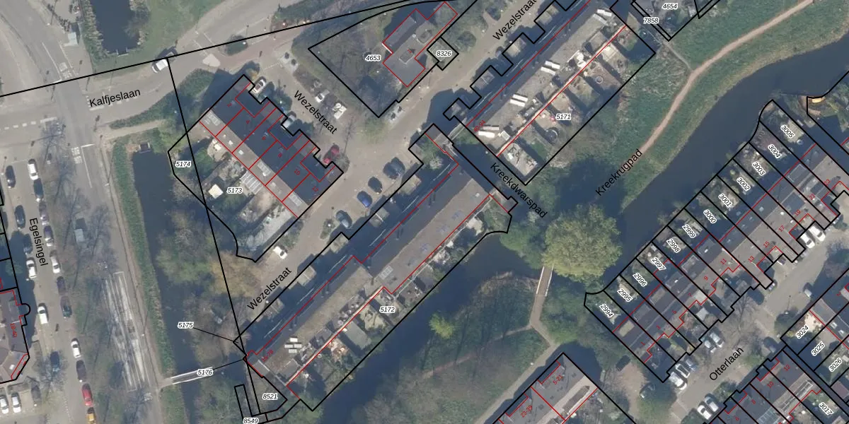 Wezelstraat 34 is gelegen op kadastraal perceel DEL00R5172. Deze kadastrale aanduiding is uniek en wordt gebruikt door het Kadaster om eigendomsrechten en andere zakelijke rechten vast te leggen. Het perceel maakt onderdeel uit van de kadastrale gemeente Delft.