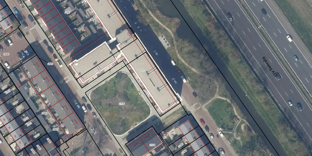 Het perceel waarop het adres ligt is DEL00-P-2773. De afkorting 'DEL00' staat voor kadastrale gemeente Delft. De gemiddelde perceelgrootte in Delft is 923,41 m². Dit perceel is kleiner: de perceeloppervlakte bedraagt 605 m². Het kleinste perceel in de kadastrale gemeente is 0 m² groot. De grootste perceeloppervlakte is 64,1 ha. Op het perceel zijn 5 adressen aanwezig. De huidige grenzen van het perceel zijn digitaal in de Basisregistratie Kadaster (BRK) geregistreerd op 11-03-2024.