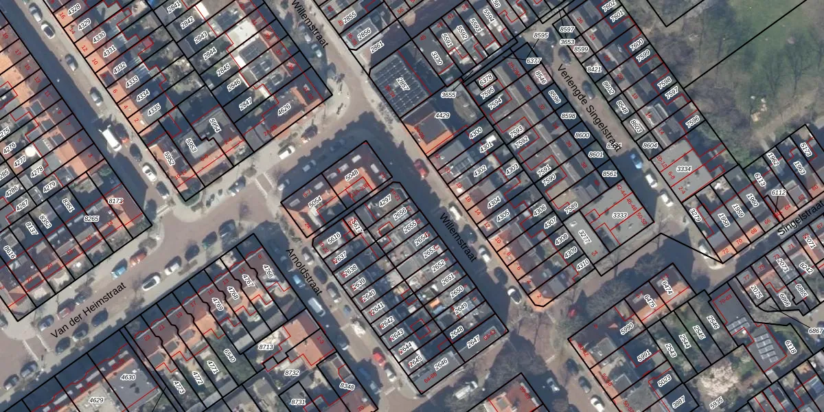 Het perceel waarop Willemstraat 17 staat heeft een oppervlakte van 50 m². Dit is een klein perceel. De perceeloppervlakte wordt geregistreerd door het Kadaster. Gedetailleerde informatie over de maten van dit perceel kunt u vinden in het rapport Kadastrale kaart met maatvoering van Willemstraat 17.